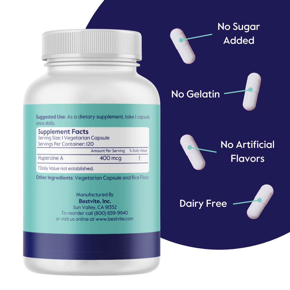 Bestvite's Huperzine A is offered in a 400mcg strength and is suitable for vegetarians.*