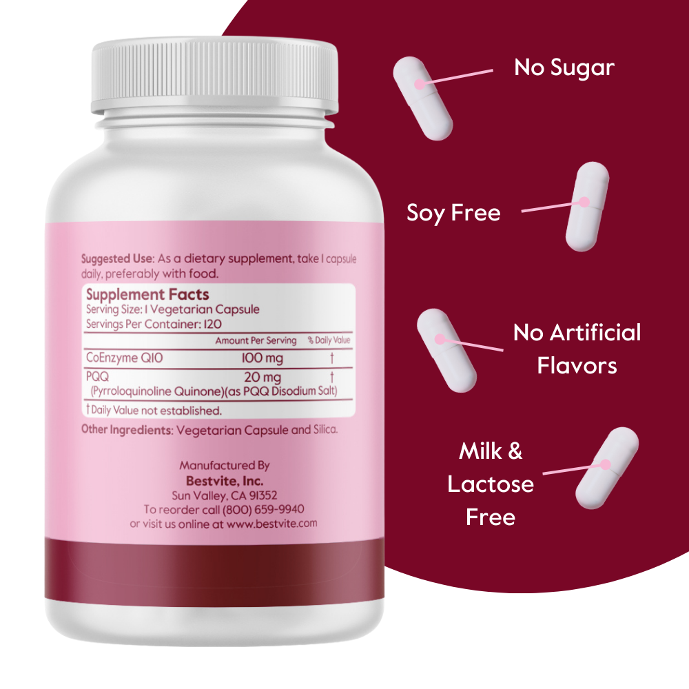 Bestvite’s Coenzyme Q10 (CoQ10) is produced through a natural fermentation process. Pyrroloquinoline Quinone (PQQ) is known to support healthy cognitive function.*