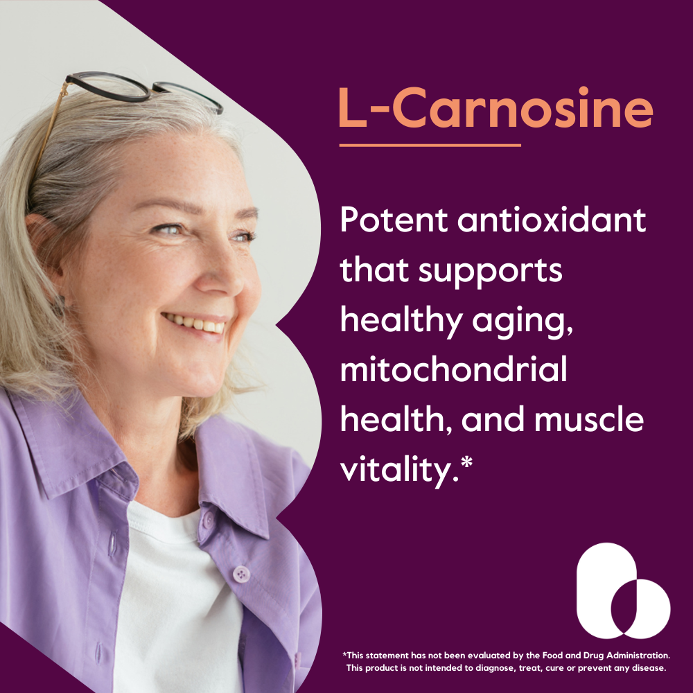 L-Carnosine is a dipeptide (a combination of two amino acids) composed of alanine and histidine. It may support muscle vitality since it is naturally found in skeletal muscles. L-Carnosine supports healthy aging and cell rejuvenation. It also acts as an antioxidant that fights against cell-damaging free radicals.*