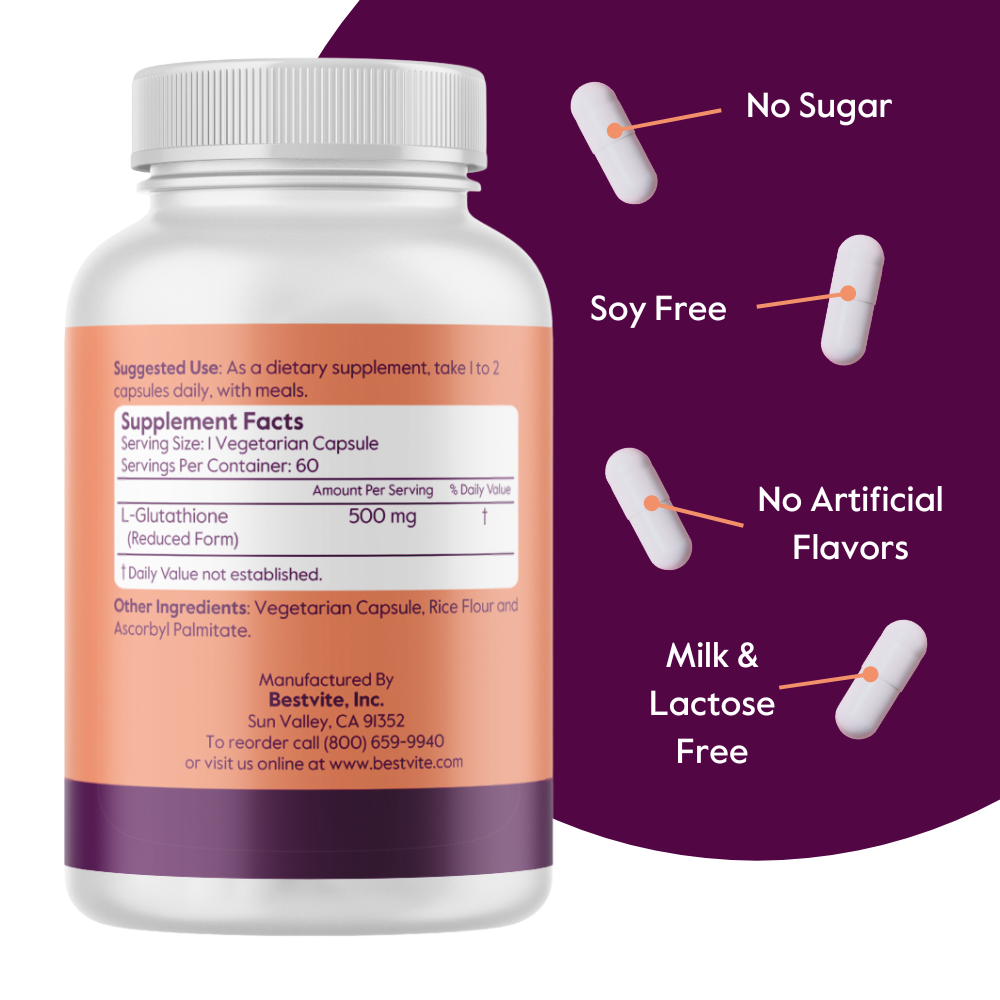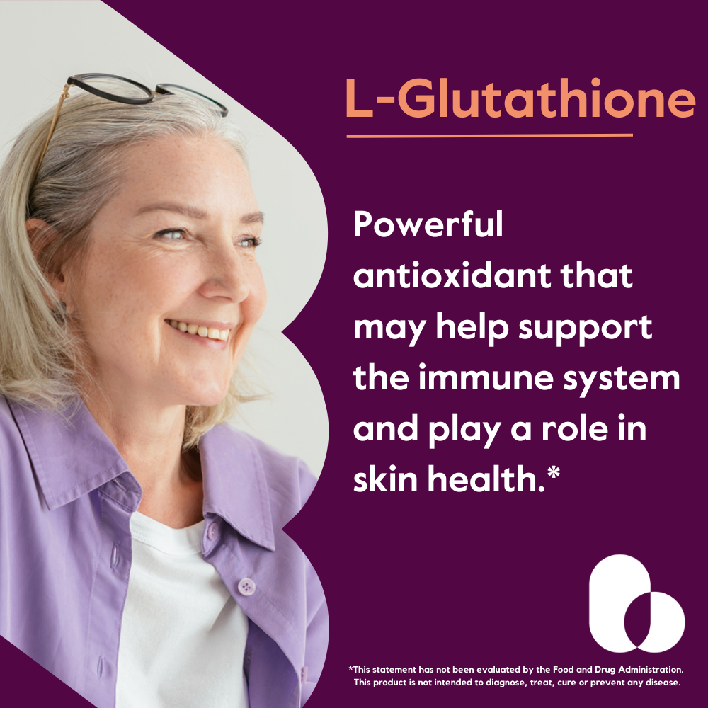 L-Glutathione supports numerous cell functions including the synthesis of proteins, regulation of enzyme activity, amino acid transport and catabolism of reactive oxygen species. Glutathione is a powerful antioxidant available in the liver for detoxifying free radicals. Glutathione is known as the "triple threat" amino acid and is found in the cells of nearly all living organisms on earth. It is a potent antioxidant and has been shown to support the body's immune system.*