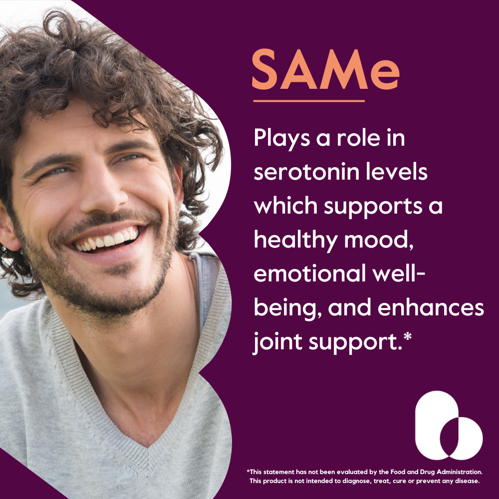 SAMe is a nutrient that carries and donates methyl molecules necessary to facilitate the manufacture of DNA and brain neurotransmitters.*